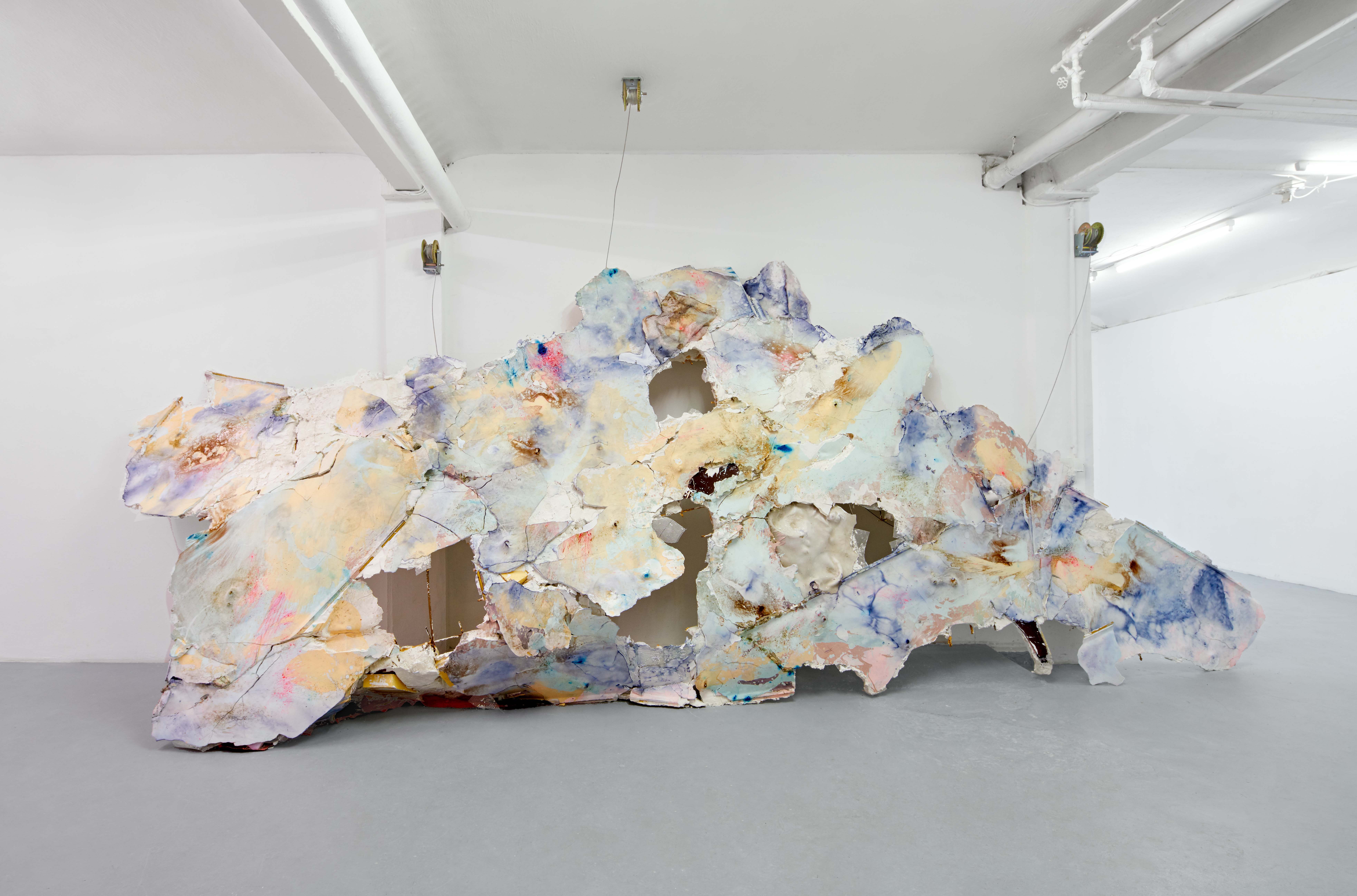 Emilia Neumann: Irgendwann baue ich eine Autobahnbrücke. An der man viel zu schnell vorbeifährt, um ein Foto machen zu können. Die Autobahn muss drunter durchgehen. Die Brücke verbindet etwas. Natürlich ist sie aus Beton und eingefärbt, aber mich fasziniert der Gedanke, dass von der ganzen Schwere, dem ganzen Material und der Funktion nur dieser Eindruck, nur der Moment bleibt, dass man die Brücke nicht fotografieren kann, weil man immer schon vorbei ist, wenn man das Foto machen will. In gewisser Weise sind alle meine Skulpturen solche Momentaufnahmen. Sie erstarren in einem zufälligen Moment als fertiges Fragment. Alles was davor war und was danach sein wird, muss nun durch diesen Moment hindurch. Für jede Ausstellung entwickle ich neue Objekte. Ich will den Räumen etwas hinzufügen und bin gespannt, wo „Koi_Pond“ schließlich stattfinden wird. Über die Zeit habe ich gelernt, den ersten Impulsen zu folgen, und ihre spontane Kraft in die Arbeit zu bringen. Wenn man den Impulsen nicht nachgeht, verliert die Arbeit an Kraft und es wird beliebig.“