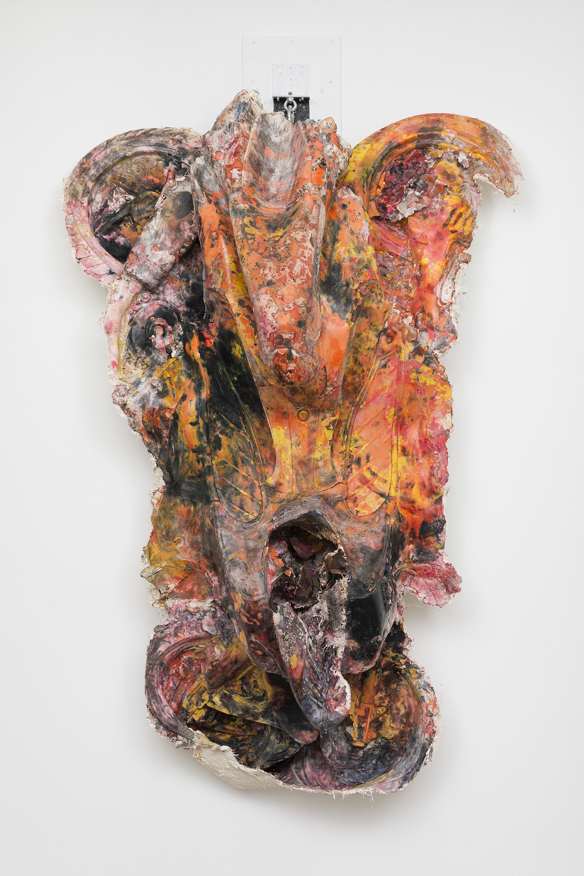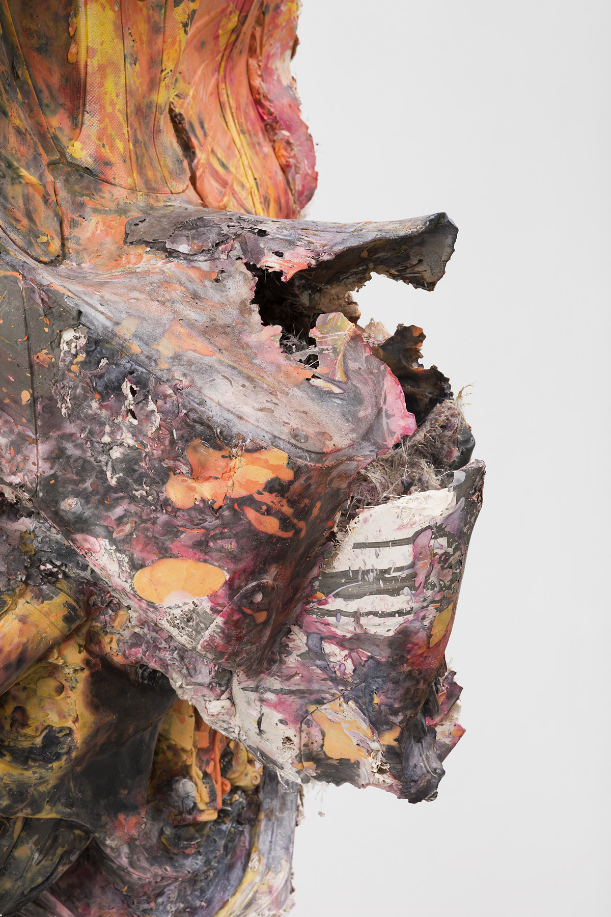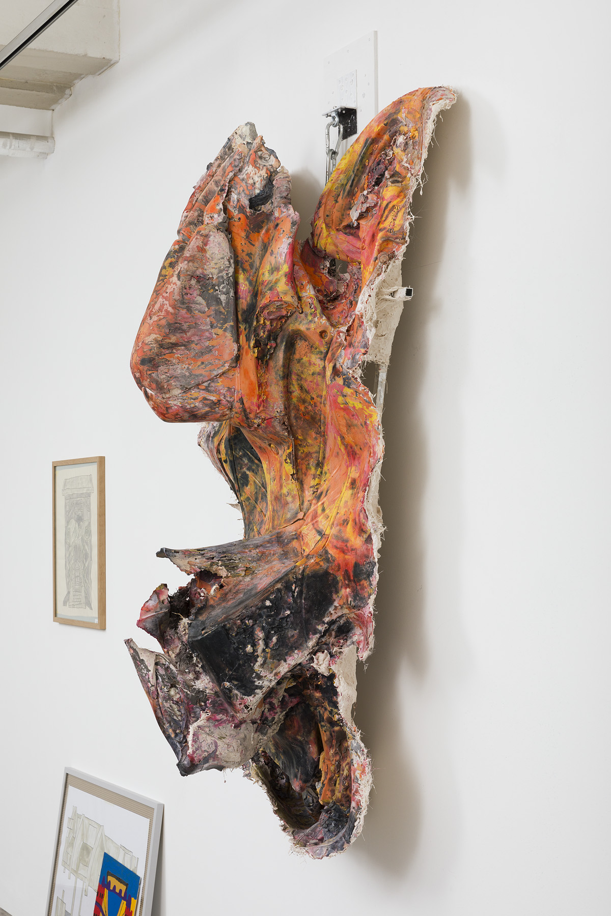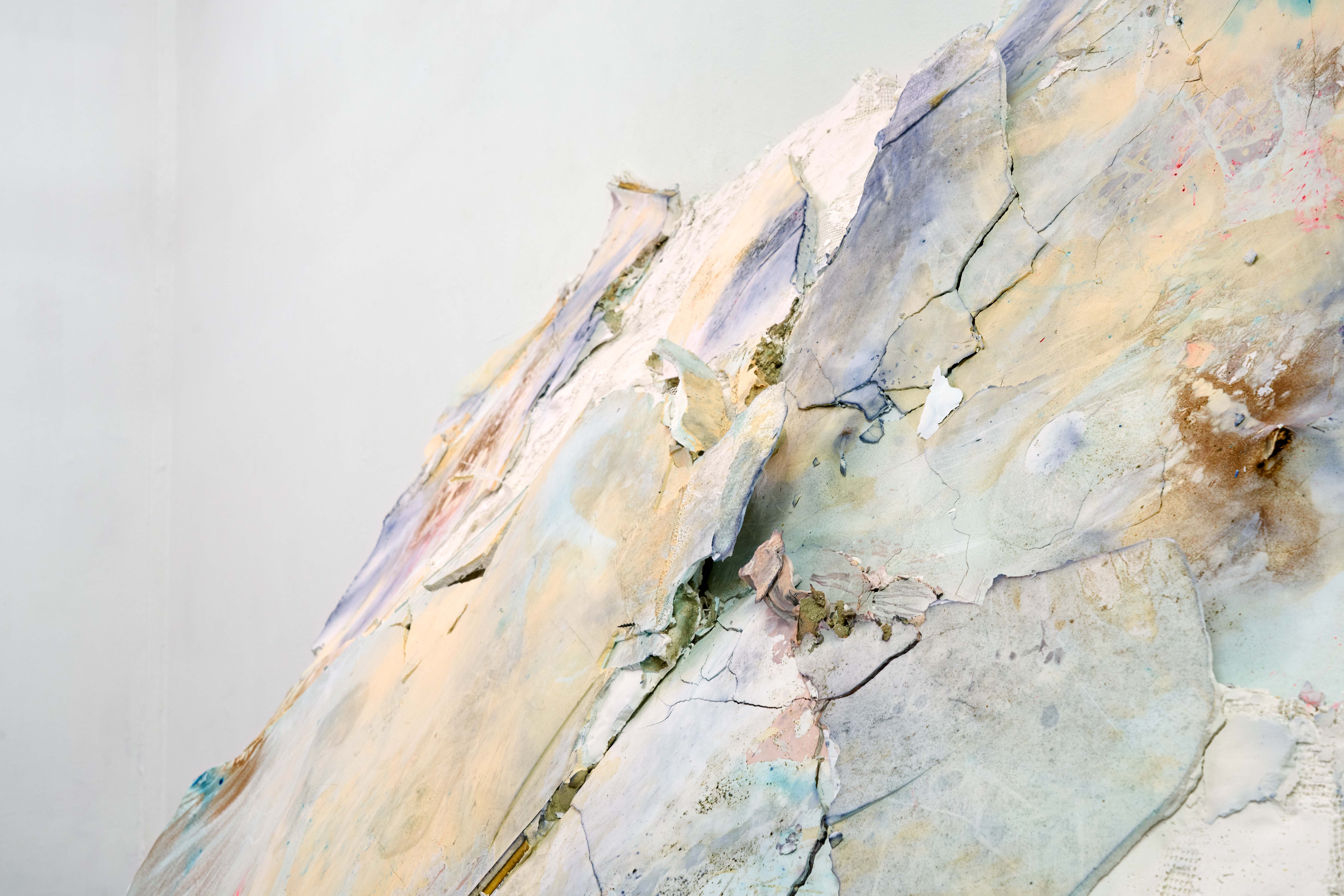 Emilia Neumann: Ich baue dem Gips oder dem Beton eine Schale und gebe dem Material eine Form. Im Vorfeld habe ich eine farbliche Vorstellung von dem Objekt, aber der Zufall ist ein nicht reduzierbarer Teil meiner Produktion. Das Material kommt als Pulver und ich verändere die Aggregatzustände: Erst Pulver, dann heiß, dampfend und flüssig, später matschig und schließlich hart. Im Laufe des Prozesses wird es zu etwas ganz anderem, als es zu Beginn war. Das Material selbst ist bloß, was es ist. Am Anfang und am Ende ist es unbeweglich und anorganisch. Erst durch die Bearbeitung und die Kontextualisierung tritt es aus sich selbst heraus, es changiert und verwandelt seine Eigenschaften; darin ist es lebendig und bleibt doch immer Fragment. Gleichwohl wächst gedanklich noch etwas weiter, selbst wenn der Beton getrocknet und das Objekt fertig ist.